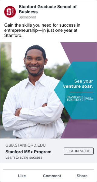 MSx is Stanford’s accelerated, one-year master’s program. These Facebook ads drove awareness that MSx is THE premier accelerated MBA for mid-career professionals.